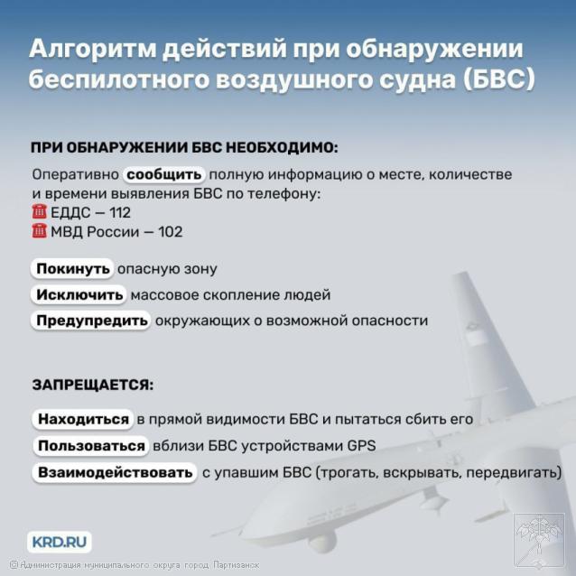 instrukciya_opri_obnaruzhenii_bla.docx Скачать файл. 20.55 КБ instrukciya_opri_obnaruzhenii_bla.docx 3 просмотра Перекрёстные ссылки книги для 10.07.2025г. ИНСТРУКЦИЯ о порядке действий при обнаружении беспилотного воздушного судна в воздушном пространстве над территорией муниципального округа город Партизанск Приморского края ‹ Памятка "Действия при угрозе теракта на железнодорожном транспорте" 06.06.2025г. Вверх 17.07.2025г. ИНСТРУКЦИЯ о порядке действий при обнаружении беспилотного воздушного судна в воздушном пространстве над территорией муниципального округа город Партизанск Приморского края ›