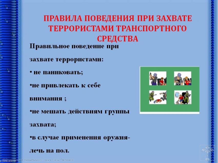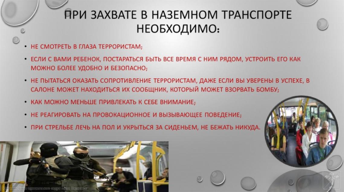 18.11.2025г. Памятка «Действие пассажиров в автобусах при угрозе (совершении) террористического акта». | Администрация муниципального округа город Партизанск Приморского края