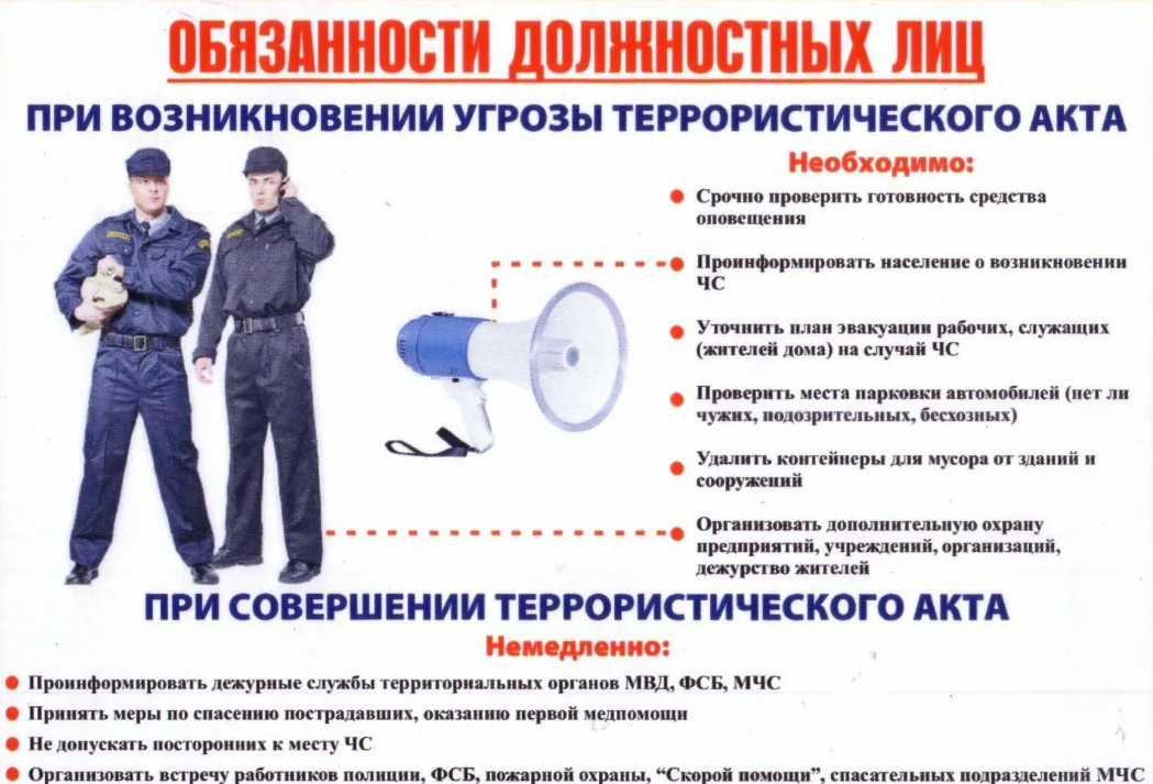 deystviya_dolzh_lic_pri_ugroze_terrakta_na_zh_d_vokzale.docx Скачать файл. 20.75 КБ deystviya_dolzh_lic_pri_ugroze_terrakta_na_zh_d_vokzale.docx 565 просмотров Перекрёстные ссылки книги для Действия должостных лиц при возникновении угрозы террористического акта на железнодорожном вокзале 24.10.2024г.е ‹ Общие и частные рекомендации (антитеррористическая деятельность) 17.01.2025г. Вверх Инструкция собственнику объекта торговли по обеспечению безопасности, антитеррористической защищенности сотрудников и покупателей.24.01.2025г. ›