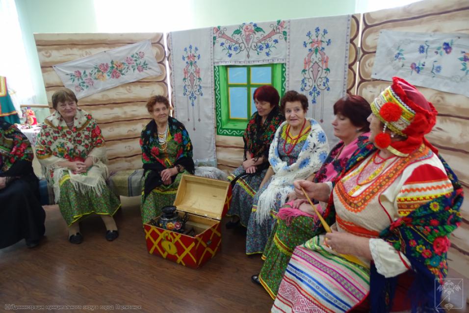 После небольшой официальной части, под аплодисменты присутствующих, в зал внесли небольшой сундучок, и началось представление. Из него вытаскивали предметы старины, показывали гостям и рассказывали, для чего они были предназначены. Все это сопровождалось пением и танцами.