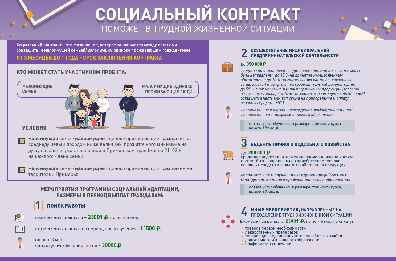 542 просмотра Перекрёстные ссылки книги для Направления социального контракта ‹ Государственная социальная помощь на основании социального контракта Вверх По вопросам, связанным с заключением социального контракта, гражданам, проживающим на территории Партизанского городского округа можно обратиться по телефонам: 8 (42363) 63-108, 8 (42363) 62-070 ›