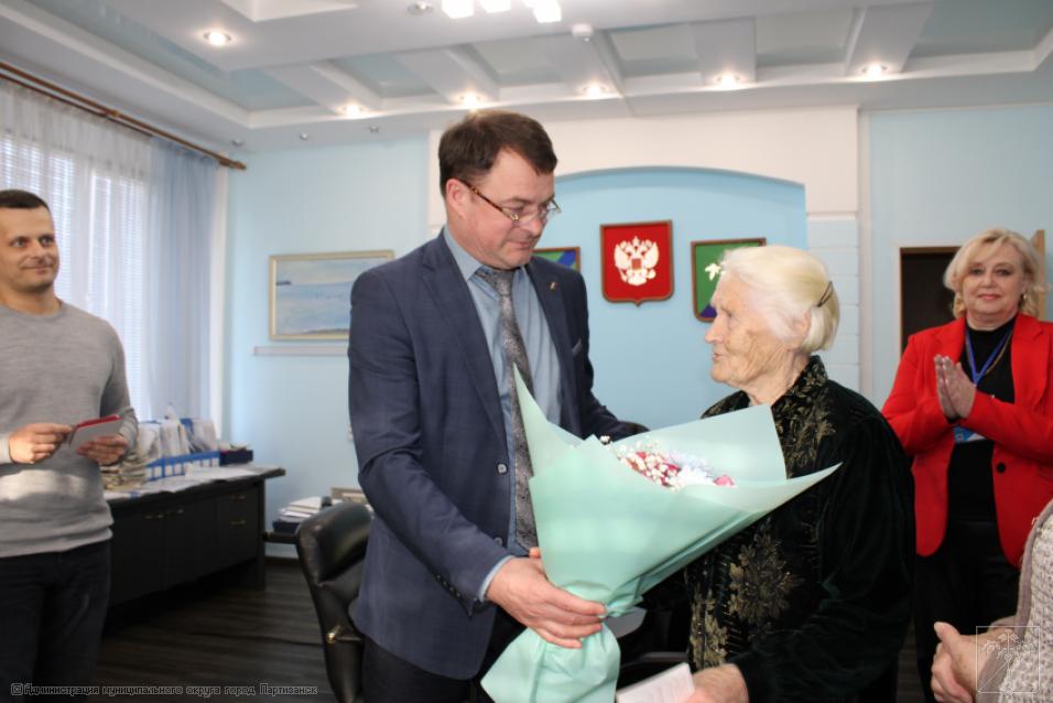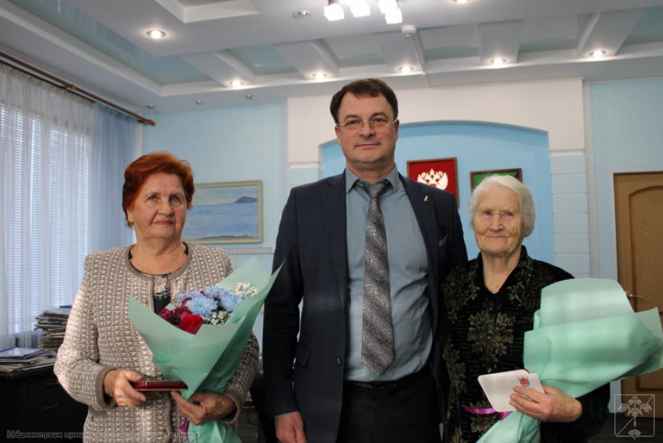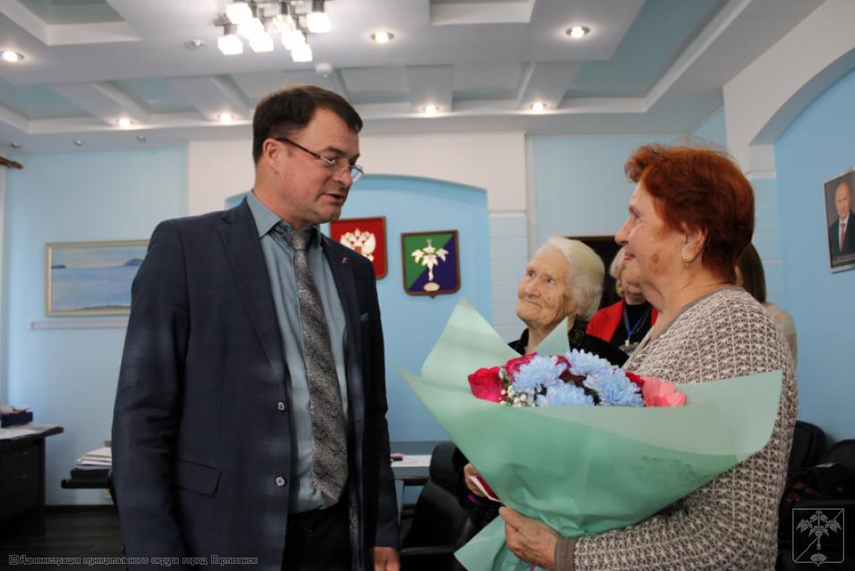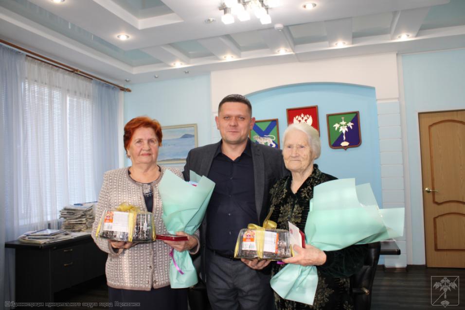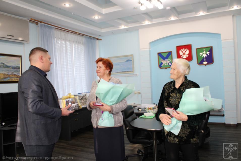 Поздравить женщин с таким важным событием пришли председатель городской Думы Владимир Красиков и представители  подразделения ПФР в г. Партизанске.