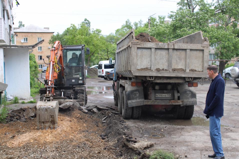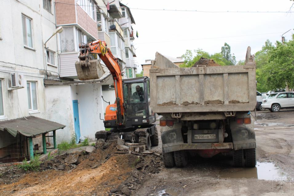 На прошлой неделе в рамках краевой программы «1000 дворов»начались благоустроительные работы во дворе еще одного дома городского округа - по ул. Центральная, 8а. Этого события жильцы дома ждали долгие годы, сегодня здесь работают люди и техника, придомовую территорию готовят под укладку асфальта.