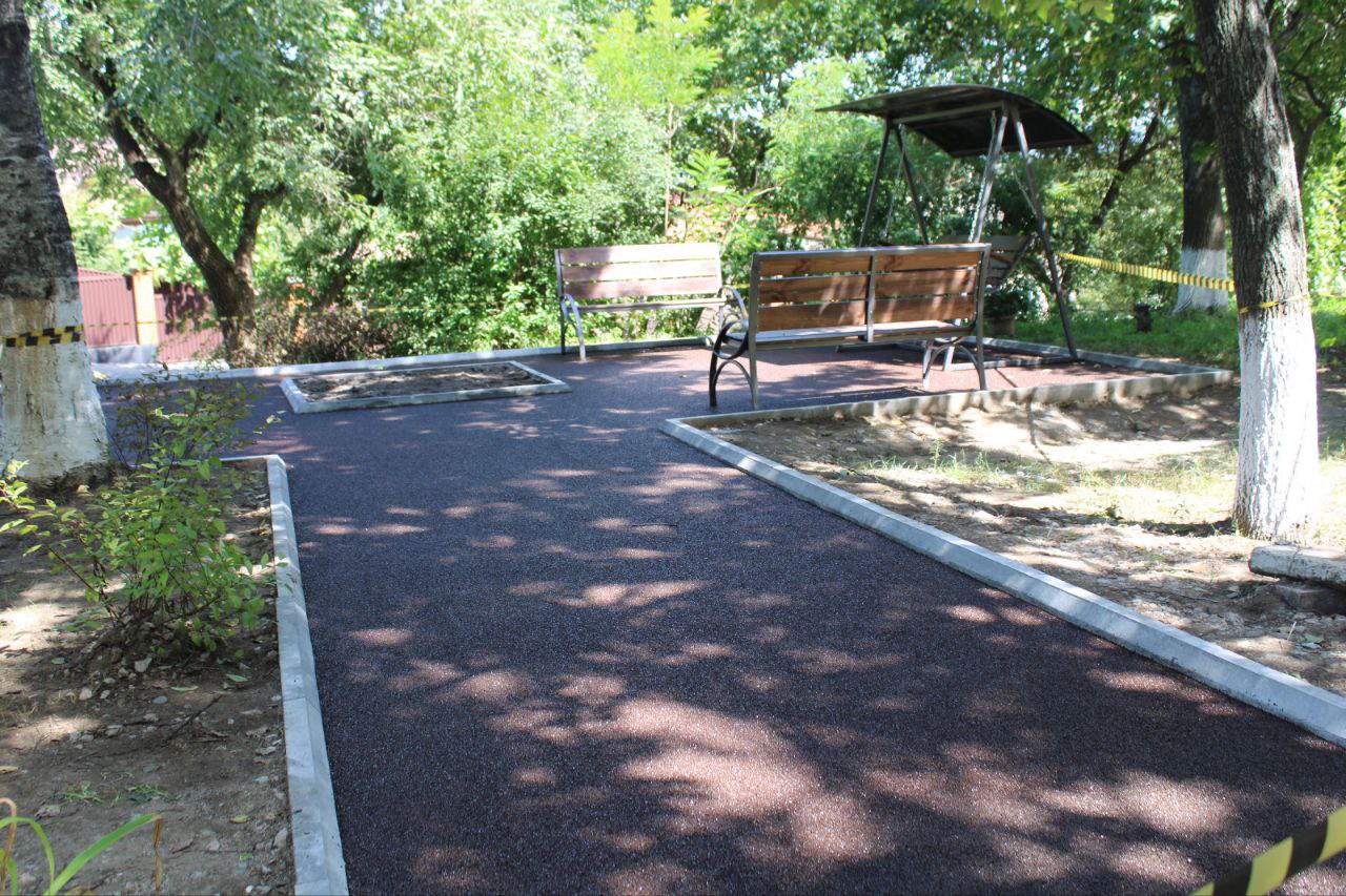 Создан сквер «Гармония души» с мягким покрытие, обновленными малыми формами, скамейками и диван-качелей. За счет собственных средств установлена дополнительная скамейка, две урны, стенд для дартса и стенд для игры серсо.